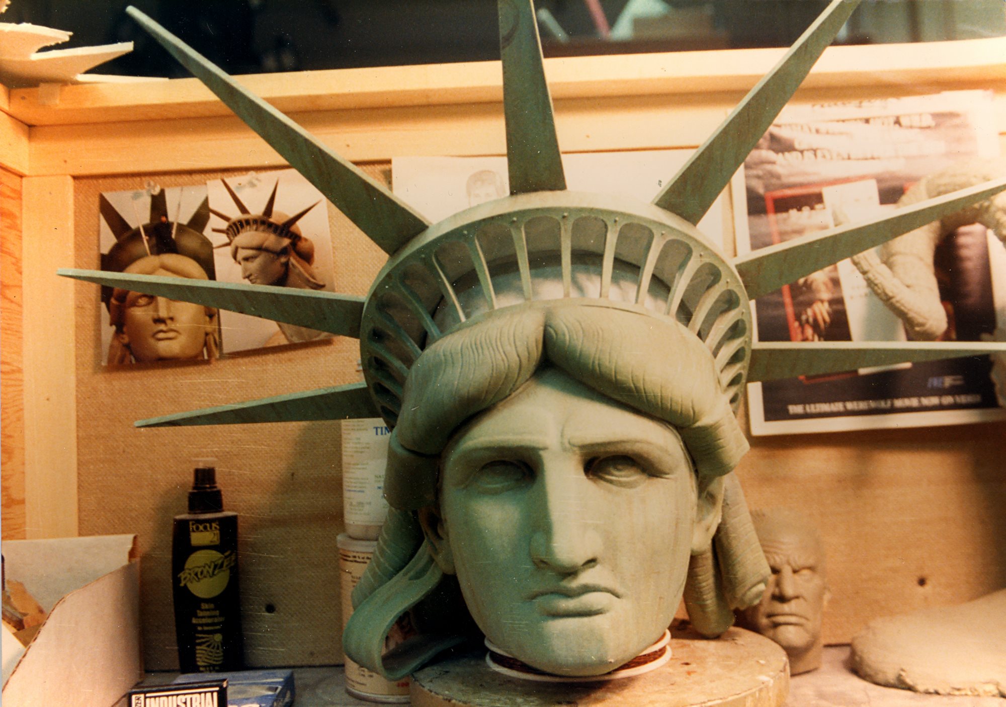 – En las escenas en las que se ve a la Estatua de la Libertad caminando por las calles de Nueva York usaron al especialista Jim Fye disfrazado, con la cara cubierta por una máscara. Fye caminaba sobre una miniatura de la ciudad rodeada de un fondo pintado para darle profundidad y realismo. Después se añadieron los diminutos extras en postproducción (la misma técnica que se usó con Stay Puft Marshmallow Man), un trabajo arduo y complicado de rotoscopia que funcionó a la perfección. Fue la secuencia más complicada a nivel técnico, pero quedó espectacular.