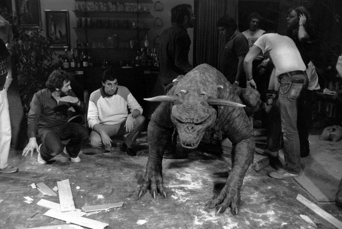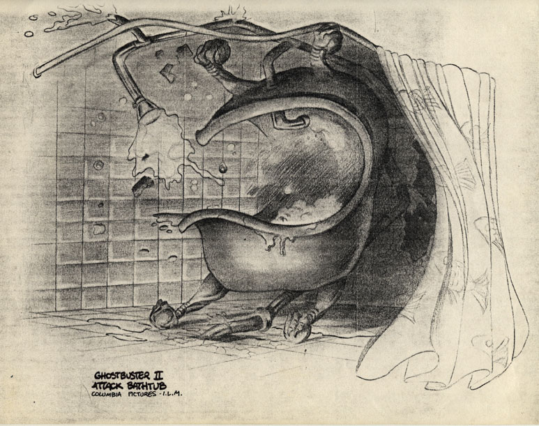 La bañera se convertiría en un monstruo con docenas de ojos en forma de pompas de jabón. Dana se asustaría y lanzaría un secador de pelo al monstruo-bañera, cuya electricidad dispersaría los ojos-pompa. En la escena final, salen los mocos del grifo y atacan a Dana como una masa rosa, haciéndola huir. La bañera estaba hecha de silicona blanca para que pareciera porcelana, pero se pudiera doblar. Y la criatura, de gel dieléctrico (el mismo que se usa en implantes mamarios) reforzado con spandex. De esta manera, el moco se podía manejar como si fuera una marioneta y combar hacia dentro como una boca gigante, haciendo huir a Dana y Óscar al apartamento de Peter.