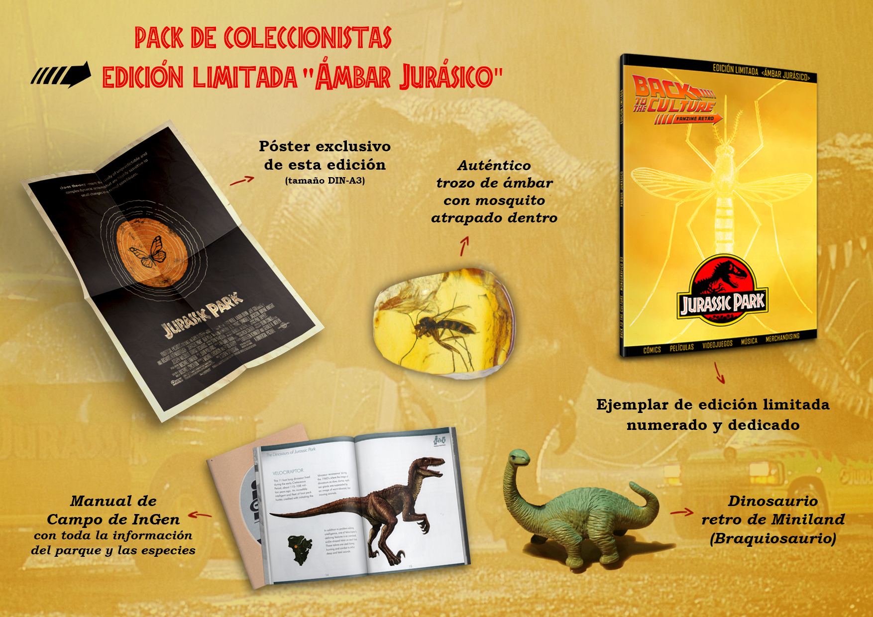 Recordad que este pack es único, ¡Y os lo podéis llevar gratis participando en nuestro concurso prehistórico! Los cincuenta primeros que compréis el tercer número de ‘Back to the Culture’ recibiréis un número y entraréis en el sorteo de este estupendo Pack de Coleccionistas “Ámbar Jurásico”. ¡Mucha suerte a todos los participantes!